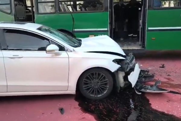 Fuerte choque de un colectivo y un auto en 9 de Julio y Santa Fe: hay al menos cinco heridos